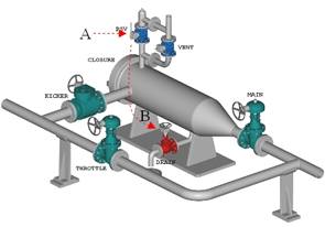 用鑰匙A關閉PSV的隔離,釋放鑰匙B。用鑰匙B開啟排放閥。