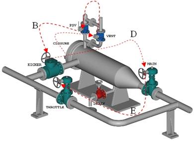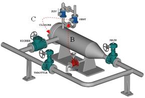 關門,釋放鑰匙C。把鑰匙C插入通風閥并關閉,釋放鑰匙B。用鑰匙B打開PSV的隔離閥,釋放鑰匙A。把鑰匙A插入打開kicker valve,并慢慢打開它。一旦打開,釋放鑰匙D,并打開主閥。釋放鑰匙E并慢慢關閉節(jié)流閥。一旦pig信號顯示pig已經通過,反順序操作以上各閥門。